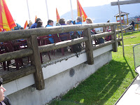 Diese sind eigentlich auch glatt über die Bühne gegangen, bis wir auf die Idee gekommen sind unsere lustige Truppe mit T-Shirts zu beglücken! Ui war das spannend welche Beschriftungs-Vorschläge da kamen.(ich weiss leider nicht mehr alle)....wir haben uns dann auf eine geeinigt, T-Shirts besorgt und einen Drucker gesucht und gefunden! Obwohl wir uns da nicht ganz sicher waren ob wir am richtigen Ort waren.Der hat unseren Auftrag so zwischen Tür und Angel entgegengenommen(wollte gerade mitten am Tag den Laden schliessen)..komischer Kauz, ja nu, die Zeit liess keine Experimente zu und ich ging am folgenden Tag nochmals hin um alles genau zu erklären und die Schriftart auszusuchen.Gesagt, getan, alles schien richtig und schon kam ein Anruf, verzweifelt erklärte der Drucker er habe ein Schirt verschnitten..hmm, grr, ......! Es war genau das Shirt das wir wegen der im Laden fehlenden grösse bestellen mussten! was tun, die Zeit drängt und für ein neues Shirt in derselben Farbe und grösse zu besorgen fehlt die Zeit!Der Drucker hats dann erledigt.hmm???kommt das gut???Zwei Tage später der Anruf dass die Schirts fertig seien!sogar vor dem abgemachten Termin..aaaber o Schreck, das Shirt war viel zu klein, und auch viel zu dunkel im Farbton..sch...grr...Zäneknirschend wollten wir das akzeptieren, da hat er uns noch das verschnittene Shirt gezeigt..???hää??das ist ja gar nicht defekt??Nein, hat er uns erklärt, ein verschnitt ist wenn mit dem Druck etwas nicht stimmt,(hätte er auch am Telefon erklären können, die ganze Aufregung war umsonst)in unserem Fall war bei einem Buchstaben ein Feld zuviel ausgefüllt..nein so was... das wäre nicht mal aufgefallen!Also haben wir das Original-Shirt noch fertig (Rückseite) bedrucken lassen und sind einigermassen zufrieden abgezottelt! Roli hat das zuviel an Farbe weggekrazt und ich habe das Bügelbrett in beschlag genommen und wollte alle "schöön" machen und.....o shit! der Schriftzug hat nicht mehr gestimmt!